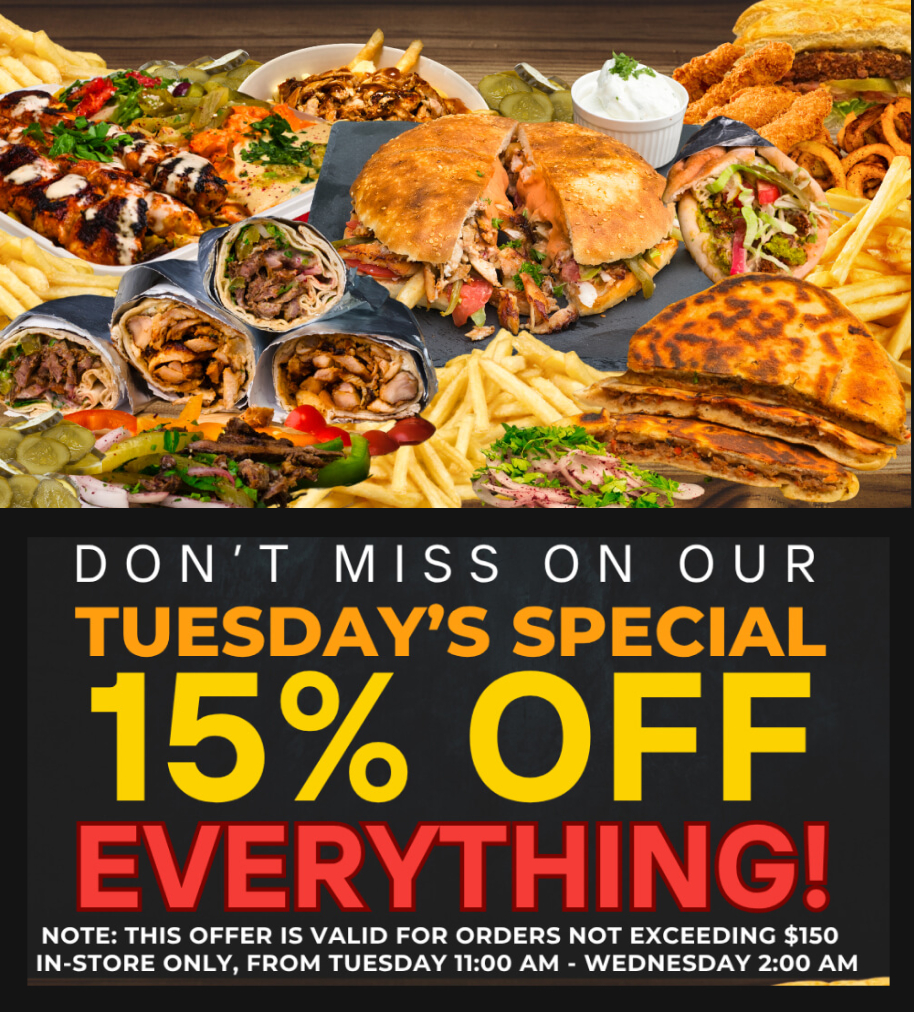 Melt-in-your-mouth shawarma, bold flavors, and authentic warmth—all day and into the night.